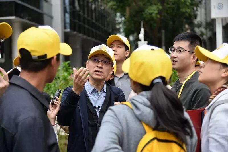 说起深圳中轴线及中心区的建筑地标——市民中心、中心书城、深圳图书馆、深圳音乐厅、少年宫、莲花山公园、十三姐妹楼等更是如数家珍。行进过程中,李明列举了一系列国内首创的建筑案例,现场剖析、详解。