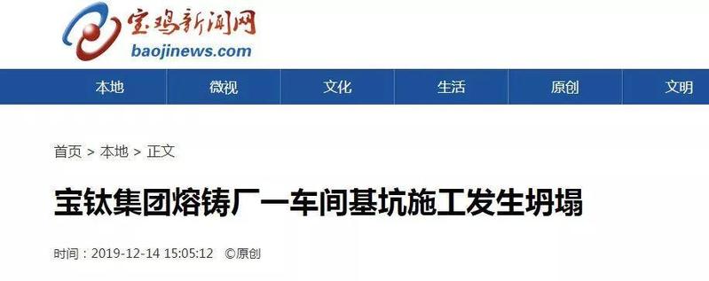 12月13日15时30分许,陕西省宝鸡市宝钛集团老厂区熔铸厂一车间内在进行重型设备基坑施工时发生土方坍塌,现场3名施工人员被埋。经救援,3名施工人员先后被救出送往医院。然而不幸的是,这3人均抢救无效死亡。