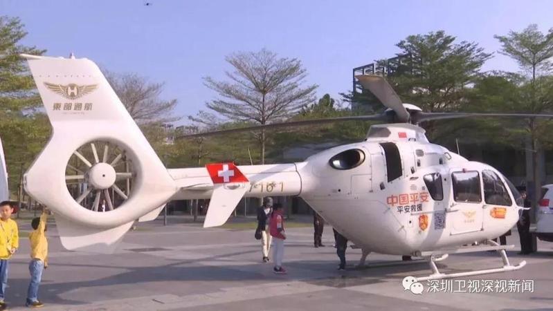15日上午,深圳交警在中心书城广场启动直升机,首先飞往粤北韶关路段探路,乘坐这辆春运探路直升机,能从高空俯瞰地面,清晰地观察深圳的实时交通情况。