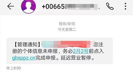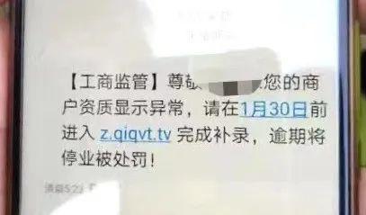 1、骗子针对的对象多为企业和个体户,短信内容多为“您营业执照状态失效或超期,请在XX日期前登录XX网址办理,逾期将限制营业以及销户处理。”等类似信息;
