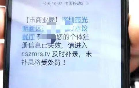 近期,多名群众到深圳市市场监督管理局窗口反映,收到与营业执照的诈骗短信。不法分子向企业、市民发送短信,以“营业执照”异常、过期、失效等为名,诱惑其点击非法钓鱼网站链接,录入个人及银行账号信息骗取钱财。