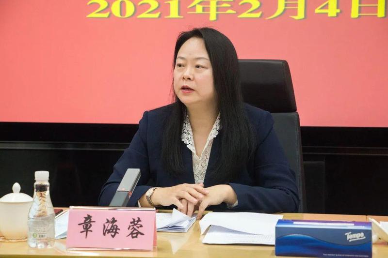 ▲福田区人大常委会副主任、区总工会主席章海蓉主持会议并发表讲话