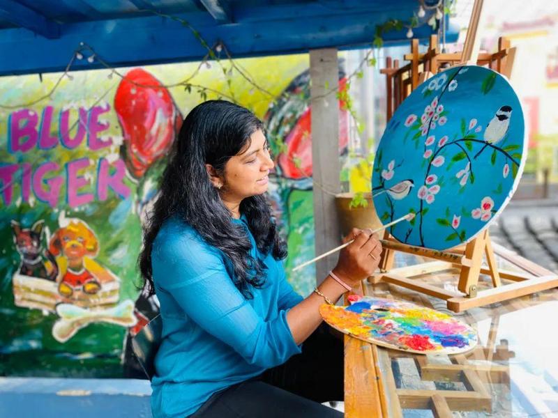 蓝虎艺术馆是专注于墙绘壁画涂鸦,原创油画定制,唐卡定制恭请,特色黑金藏茶,绘画艺术培训,绘画体验(素描,水彩,彩铅,油画)于一体的综合性线下艺术体验馆。店内所有墙绘均由内部团队设计手绘完成。