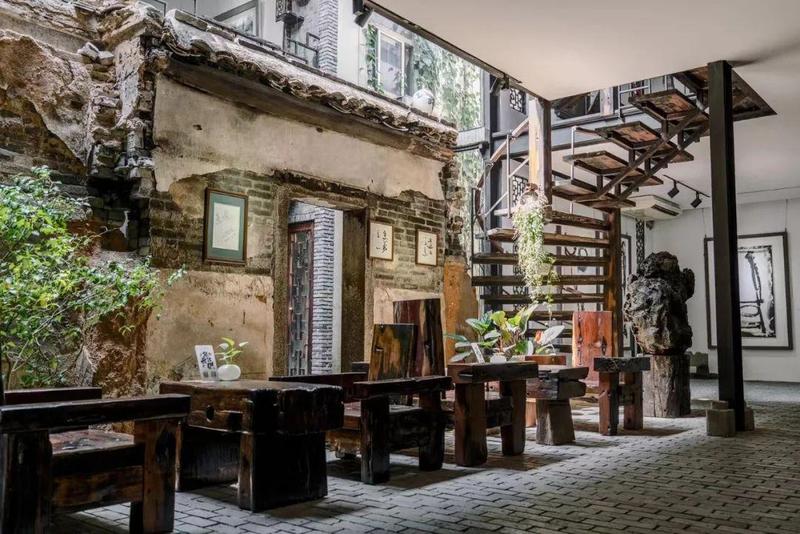 三层院落,青砖黑瓦古色生香,古木家具、花草树木自然点缀其间构成了古风黯然而流光溢彩且具有中国南北风情的四合院文化。