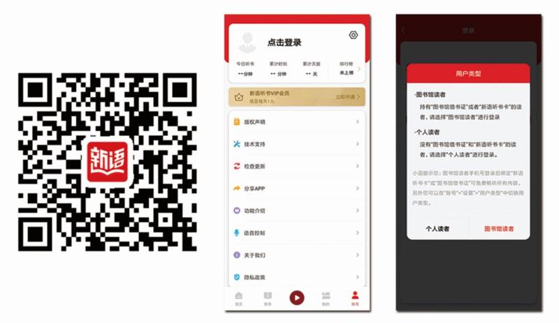 图书馆读者可通过手机号或微信登录后绑定所持有的图书馆借书证或新语听书卡,畅听所有内容。