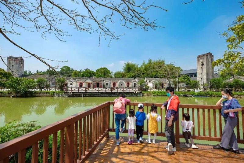 观澜版画基地内是典型的客家人古村落。古村依山傍水而建,水塘、古井、宗祠、碉楼古色古香,构建出一派独特的客家居住风情。