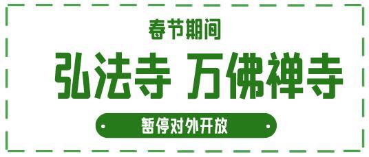 2月10日(腊月二十九)早8时至2月26日(正月十五)晚20时,共十七天,深圳弘法寺、万佛禅寺均暂停对外开放,禁止工作以外的人员和车辆进入。