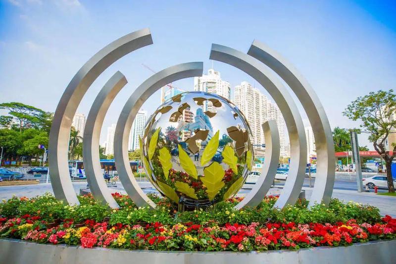 罗湖区城管部门在深圳火车站、大剧院、鸿昌广场、金笔广场及翠湖公园等5处地点,结合周边构筑物设置节日特色花雕,在人民南商圈以月季为主题花,打造一路一域的商圈花艺景观;