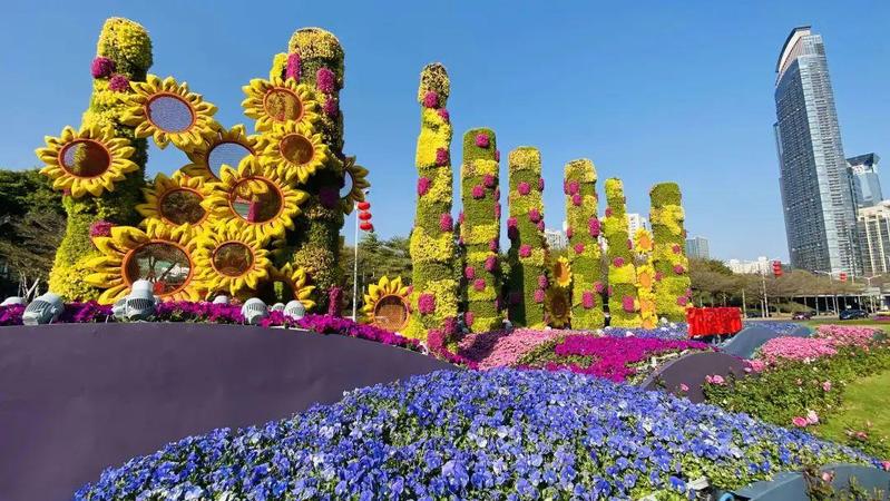 福田区城管部门在中康路、香蜜湖路、深业上城、皇庭广场等道路、广场、商圈均打造了综合花境;