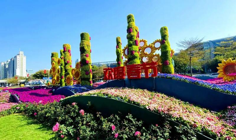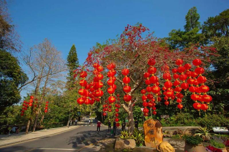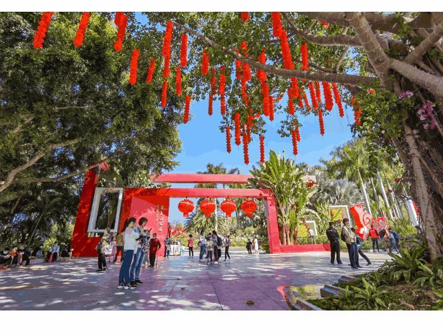 仙湖植物园围绕“春暧花开,情暖人心"的主题,在园区重要景点及主园路节点进行景观布置,通过花境营造、饰品氛围烘托等形式,营造花团锦簇、喜庆祥和的节日氛围。