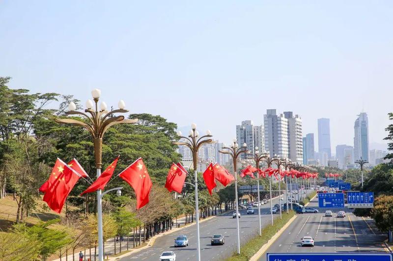 全市各区城管部门共在459条城市道路的路灯杆和63座人行天桥上悬挂灯笼约14.3万个、中国结652个,结合灯杆杆型在福田中心区、侨香路等路段悬挂国旗4518面,在城市道路重要节点、公共广场周边行道树上悬挂小灯笼串超过10万串、40万个。