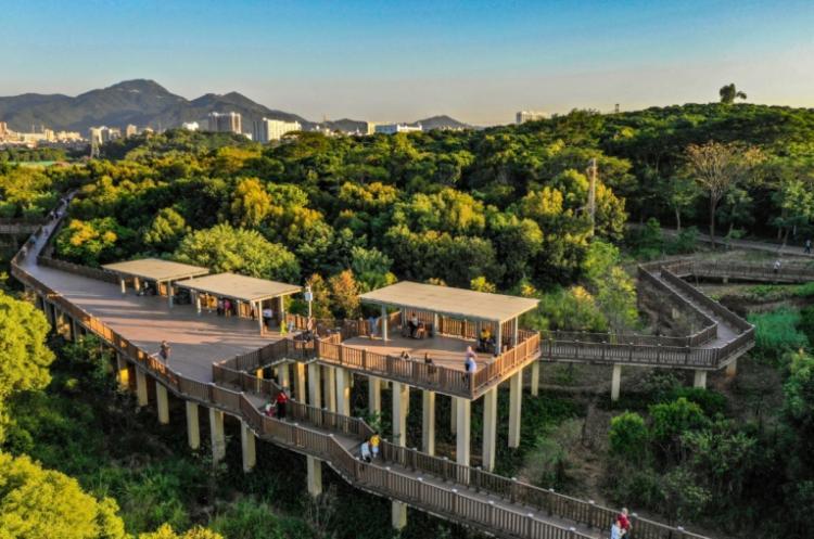 2020年一年的时间,石岩山河湖城市景观带从规划蓝图变为现实画卷。阳台山9公里缓步道盘旋而上,攀顶登峰再添新径。石岩河一河两岸12.8公里环河步道全线贯通,8个滨水广场渐次展开,再现圩镇风情。