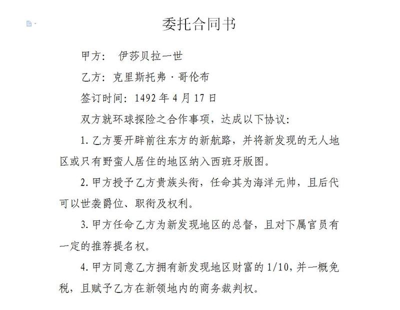 1492年,一笔价值3艘船的“小买卖”在西班牙达成了:
