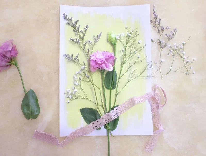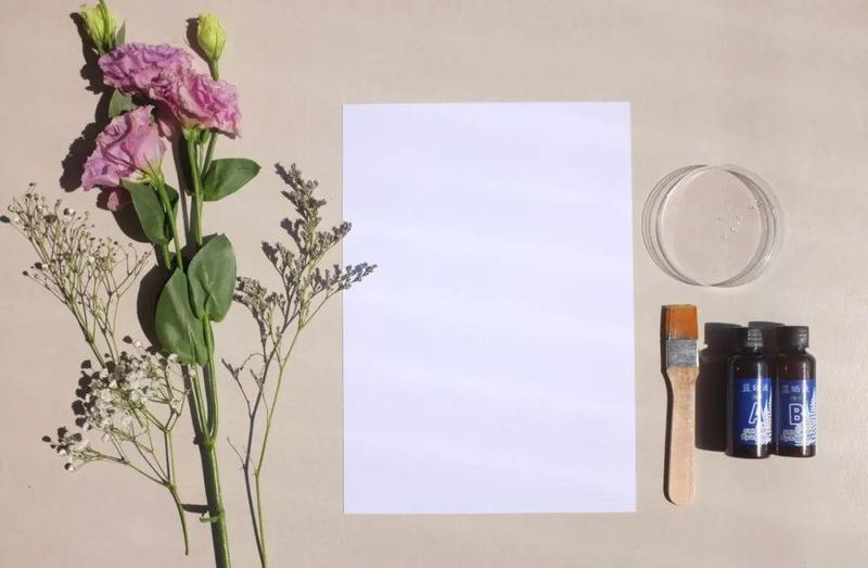 将刷了混合液的纸自然阴干,同时考虑一下素材的搭配与摆放。