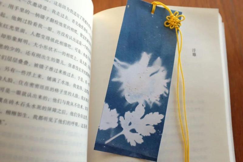 除了装饰画,也可以尝试用蓝晒法做各种东西,可以用布做成蓝晒布帘,也可以用空白的扇子做蓝晒纸扇,若是追求实用小巧,则可以选择裁成书签。