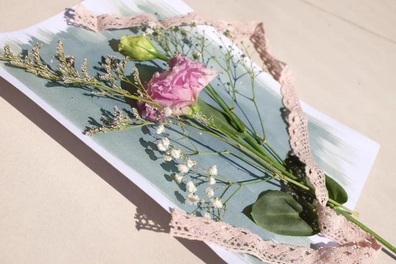 这里我选用了鲜花、满天星和情人草,用了一小截蕾丝增加趣味性。