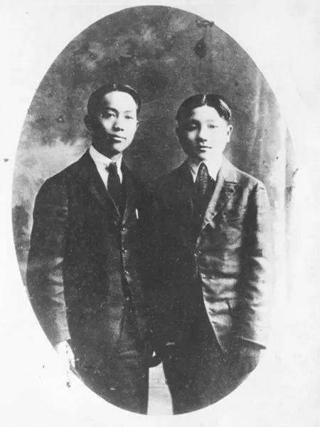 邓小平(右)和邓绍圣1921年3月在法国的合影