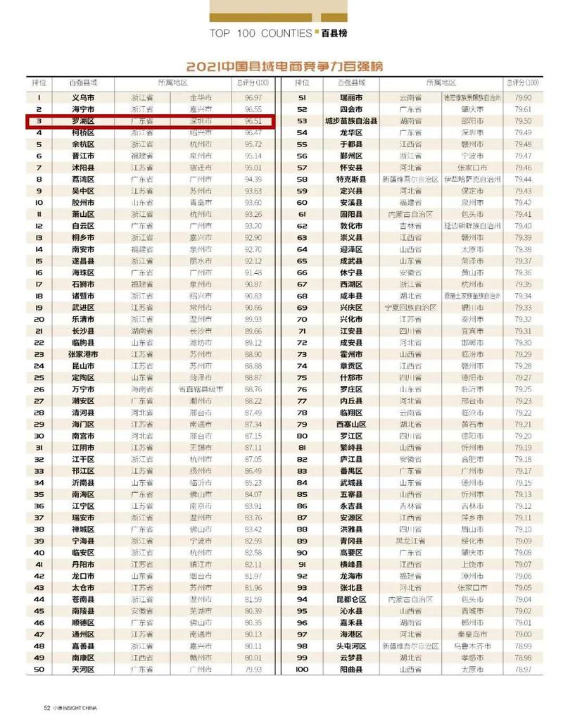 分别为深圳市罗湖区位居第3、