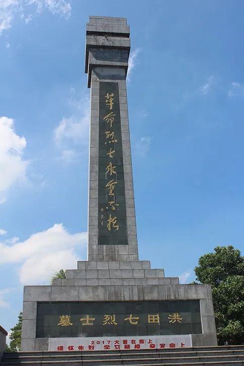 为纪念1941年至1945年期间,在沙井与日伪寇战斗中牺牲的洪田七烈士及在其它战斗中牺牲的共计50名烈士,2000年,沙井镇政府在沙井上星中心公园修建了洪田七烈士纪念碑。2007年,沙井街道办事处将烈士纪念碑迁至七烈士原土墓所在地,该纪念碑是宝安区内目前占地面积最大、安葬烈士最多、设施最完善的烈士纪念设施。