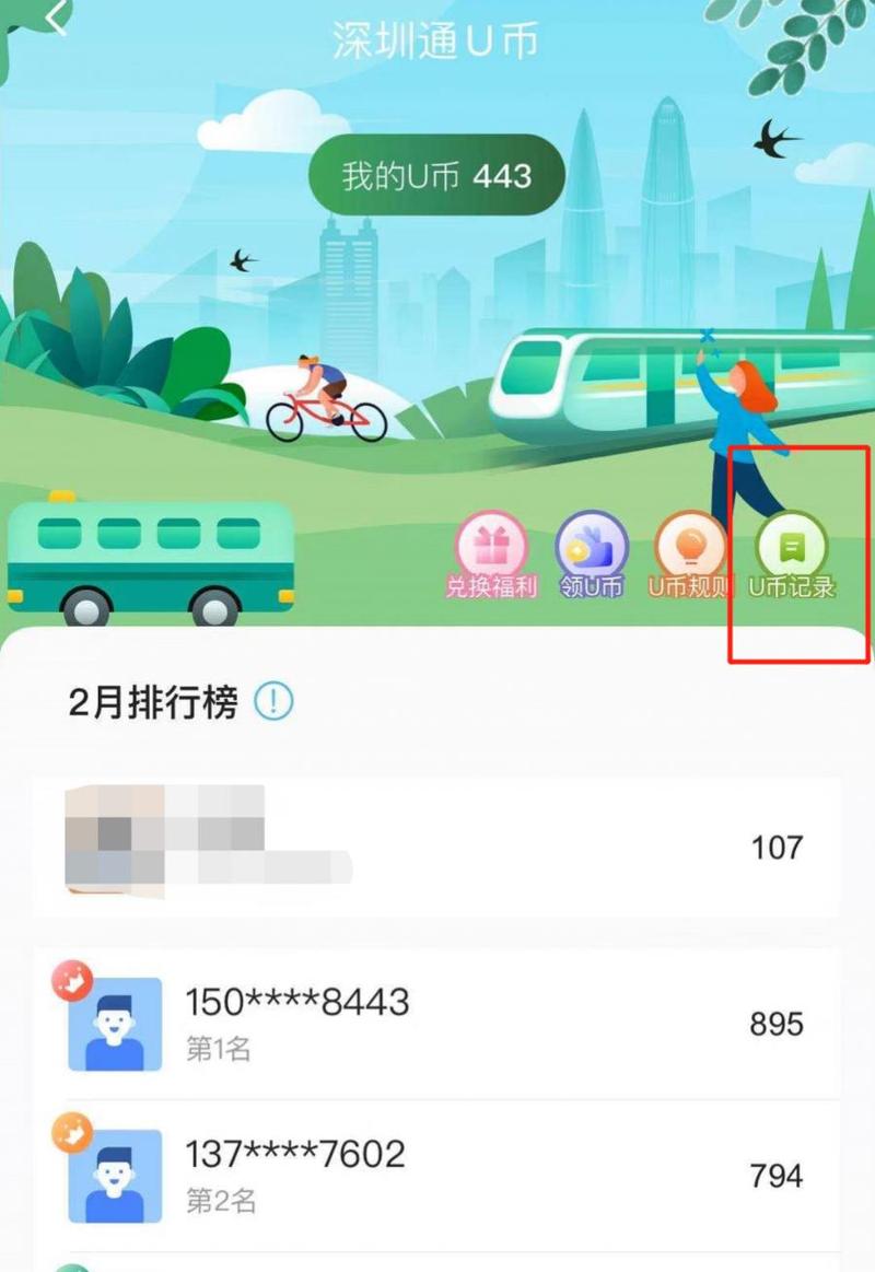 3.U币获取记录可在深圳通APP或“深圳通+”微信小程序查询。