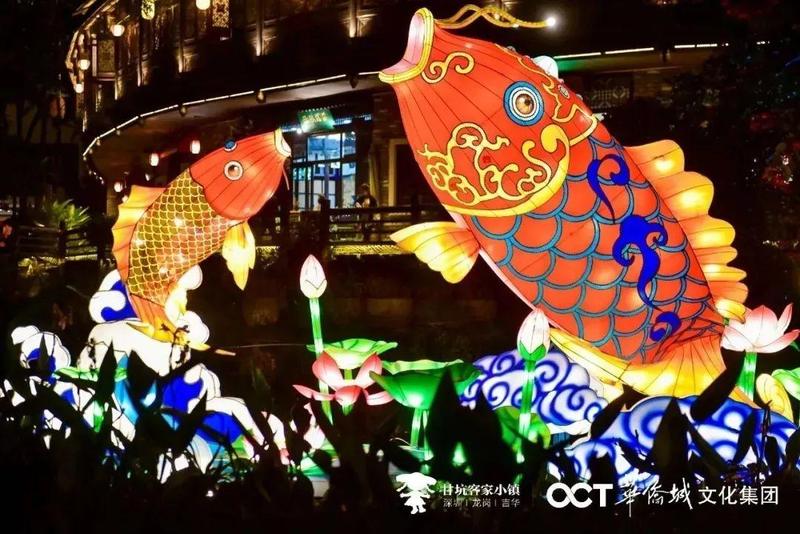 “年年有鱼”、“吉祥如意”等大型彩灯