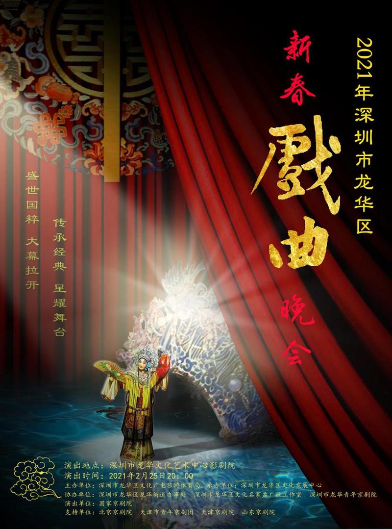 晚会由龙华区文化广电旅游体育局主办,区文化发展中心承办,区龙华街道办事处、区文化名家孟广禄工作室、龙华青年京剧院协办,国家京剧院作为演出单位,与北京京剧院、天津市青年京剧团、天津京剧院、山东省京剧院一同为市民呈现了一场京剧艺术盛宴。