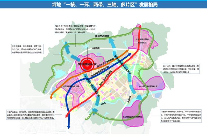 ▲龙岗区“一芯两核多支点”战略布局图