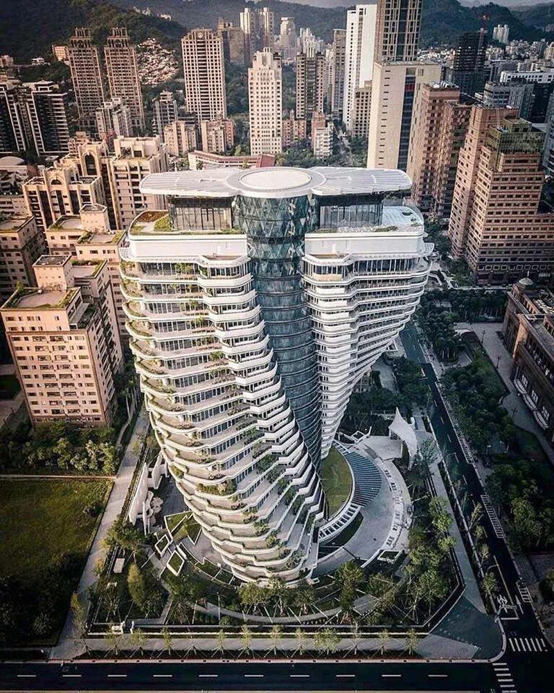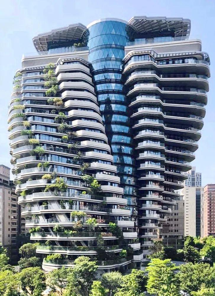 该造型为住户们带来了非常广阔的观景视角,尤其看向台北地标101塔和中心商业区;扭转造型更为人们提供了必要的视觉遮挡和私密性需求。