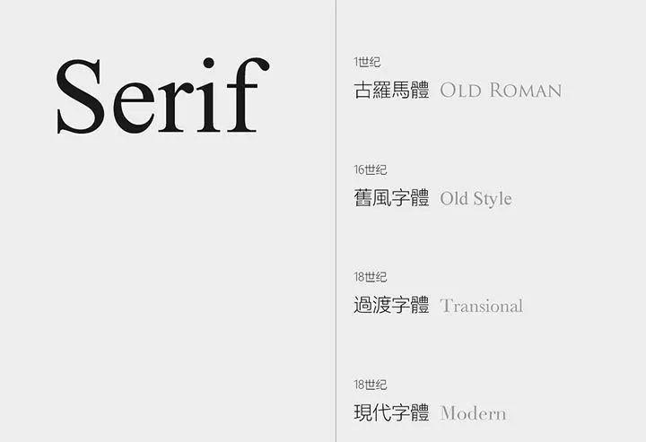英文字体大致分成三类,衬线体,无衬线体和其他字体(包括哥特体,手写体和装饰体等)。