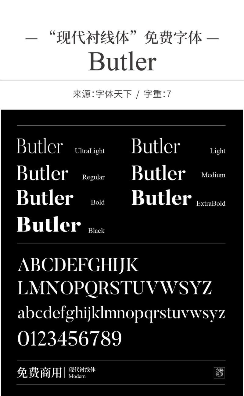 出现在18世纪末,特点是极细的衬线,强烈的笔画粗细对比。有着锐利的工业感,同时也保留着传统的衬线元素,显得现代而优雅。