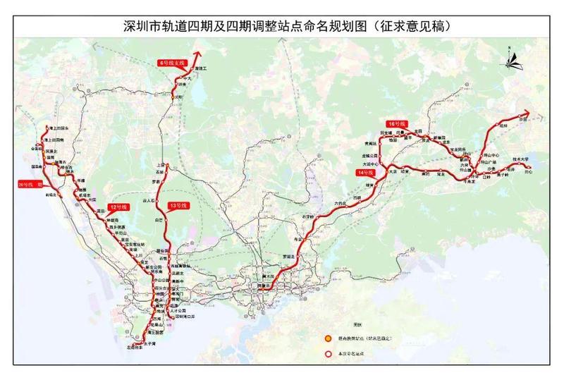 2月25日,深圳市规划和自然资源局发布关于《深圳市轨道四期及四期调整有关线路站名规划》方案公示的通告。