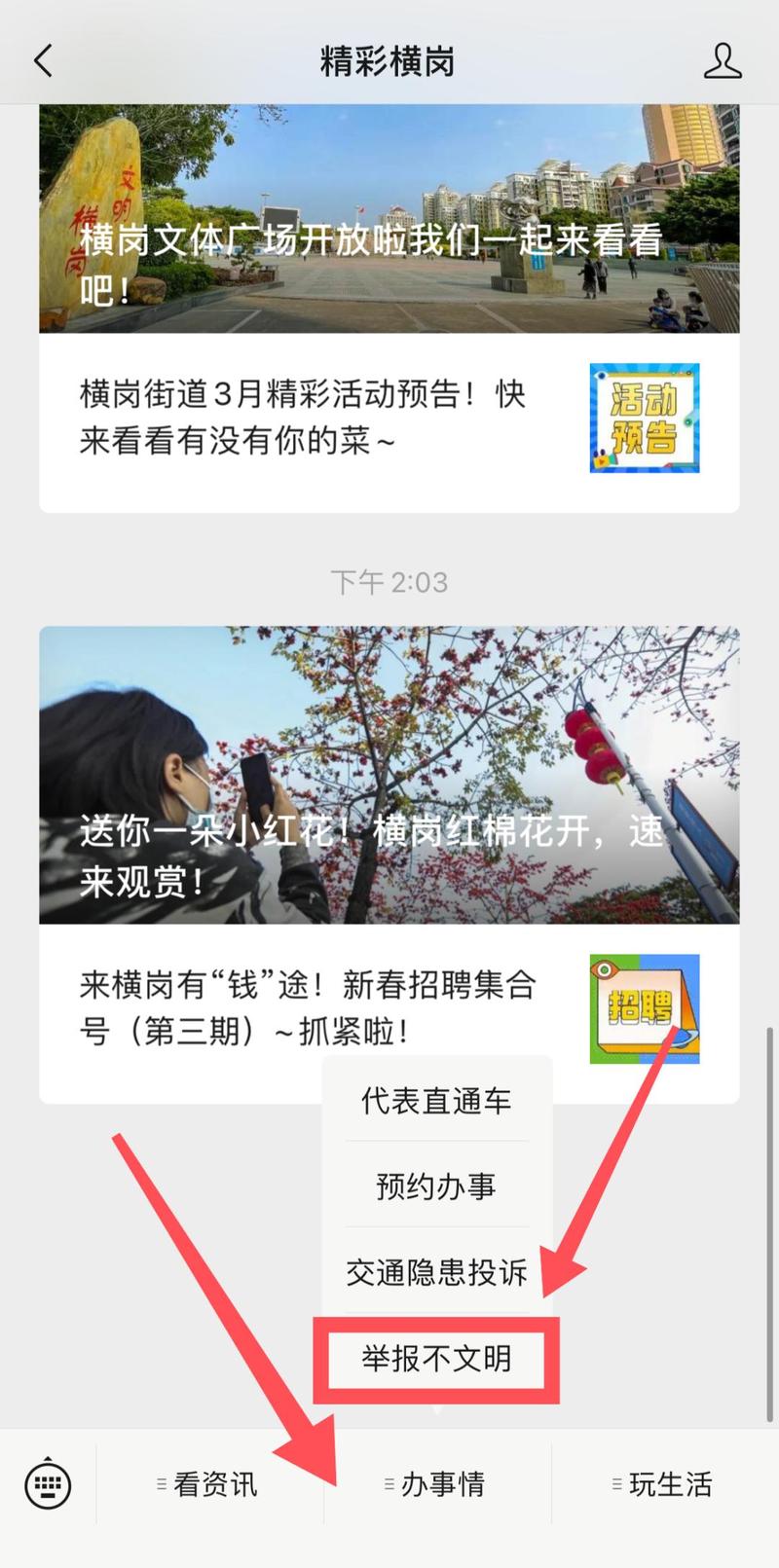 点击精彩横岗菜单“办事情”
