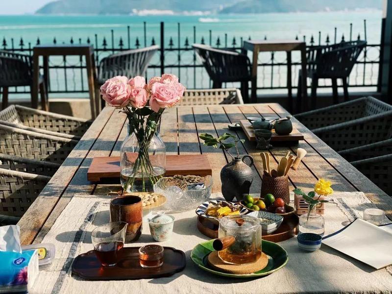 许多人情不自禁的被这个清新的滨海小院所吸引,会进到院子打卡。虽然可以选择的品类不多,但可以点一壶茶或者一杯咖啡,坐在怡舍的院子里边吹海风边发呆,顺便围观一下其他来网红小巷打卡的人们。