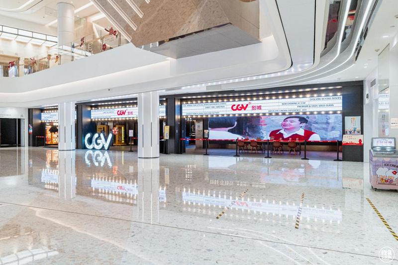 纵跨5层楼的CGV影城,集IMAX®激光、SphereX、4DX等多种特效厅 ,其中SCREENX厅,可以270°身临其境式观影。