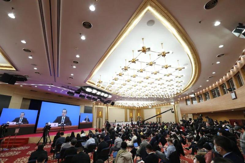 十三届全国人大四次会议下午3时在人民大会堂新闻发布厅举行记者会,国务委员兼外交部长王毅就“中国外交政策和对外关系”相关问题回答中外记者提问。