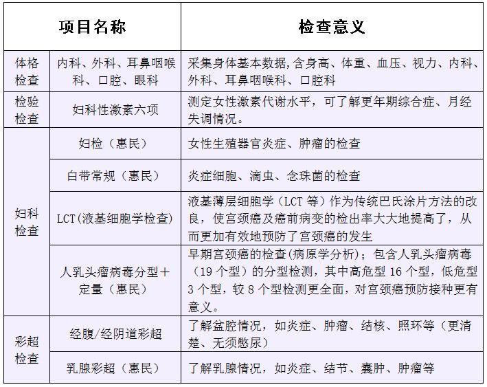 意义:了解女性主要器官健康状态、激素水平检测,宫颈癌筛查及HPV病毒检测。