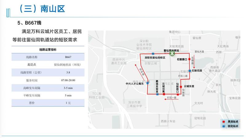 留仙洞地铁站、招呼站(石鼓路口)、石鼓花园、招呼站(云城东里、仙鼓路口、云城泊寓)、鹏城实验室、中兴人才公寓东、深职院留仙洞校区、留仙洞地铁站