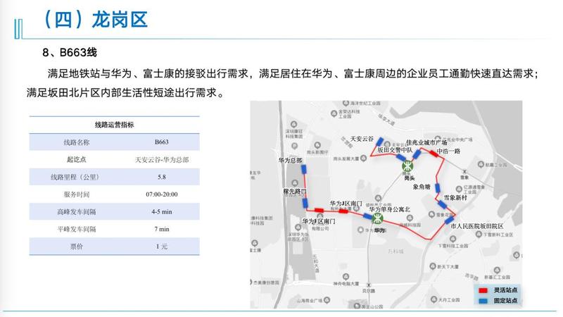 天安云谷、坂田交警中队、佳兆业城市广场、招呼站(中浩一路)、象角塘、雪象新村、市人民医院坂田院区、华为单身公寓北、招呼站(华为J区南门、华为F区南门)、稼先路口、华为总部