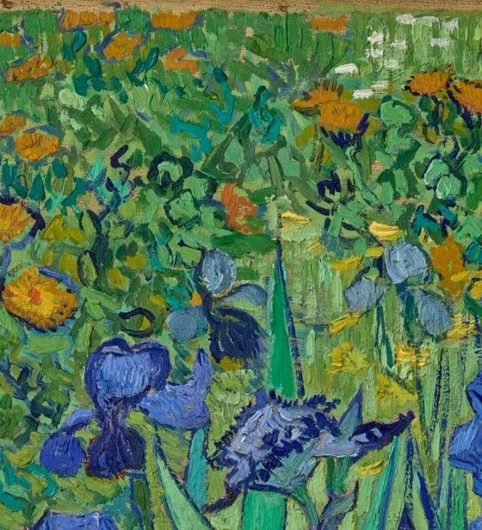 1889年5月,梵高自愿来到圣雷米精神病院治疗,在那,梵高画了大量院内的紫色鸢尾。鸢尾是法国国花,代表光明和自由。