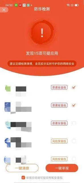 (点击此按钮快速举报可疑应用/安装包,可勾选举报后清除即可在举报后删除可疑应用/安装包)
