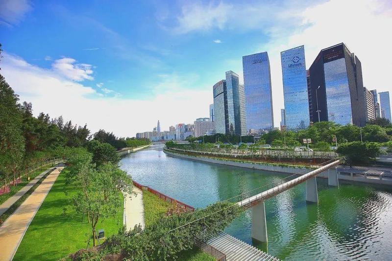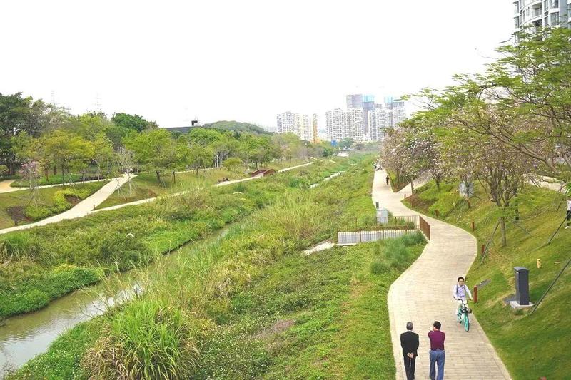 大沙河生态长廊全长13.7公里,从深圳大学城延伸至深圳湾入海口,像一条美丽的“项链”串联10多个公园。