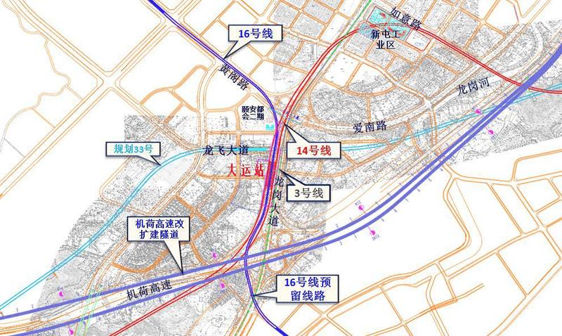 未来,它将成为东部最大综合交通枢纽,实现3、14、16和深大城际铁路(原33号线)四线换乘快速通达