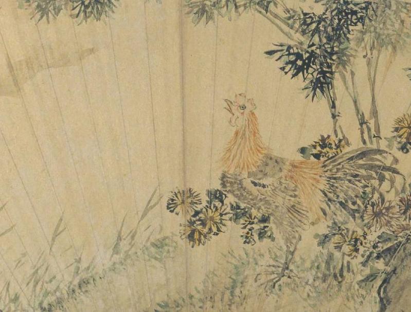 明 陈嘉言《鸡鸣图扇页》(局部) 故宫博物院藏