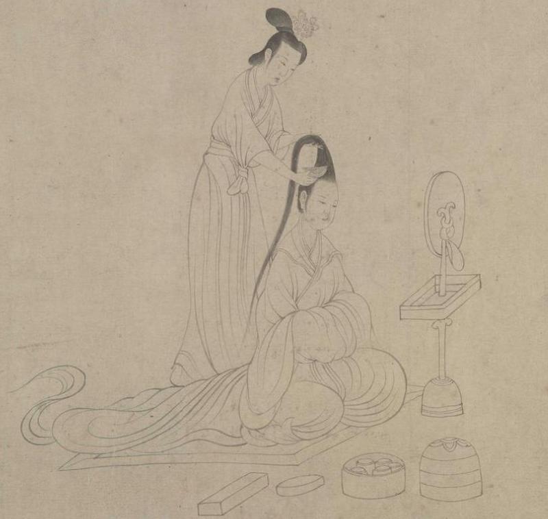 陶侃母亲放下自己的头发,长及地面,又厚又密。她拿起剪刀,将长发剪下,做成两股假发卖出,换回几斛上好的大米,吃食总算有了着落。