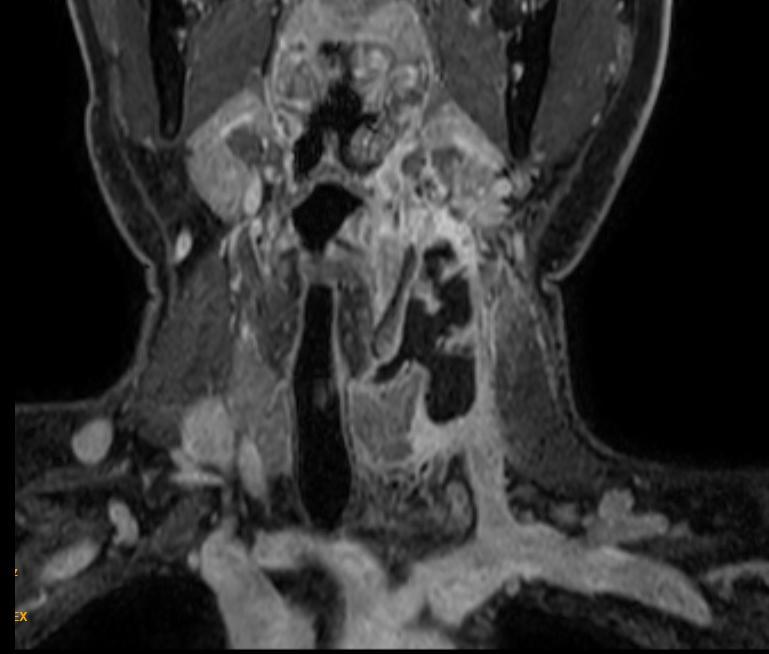 一周前,孙先生左侧颈部再次肿胀起来,孙先生很疑惑,同一个地方反复化脓感染,会不会还有其它问题?带着这个疑问,孙先生来到龙华区人民医院就诊。经龙华区人民医院耳鼻喉科钱迪、陈志喜主任医师仔细检查后,考虑可能是颈部一种相对罕见的疾病——先天性梨状窝瘘(又名:第三鳃源性瘘管)伴感染可能性大,建议孙先生进一步完善颈部增强磁共振检查。