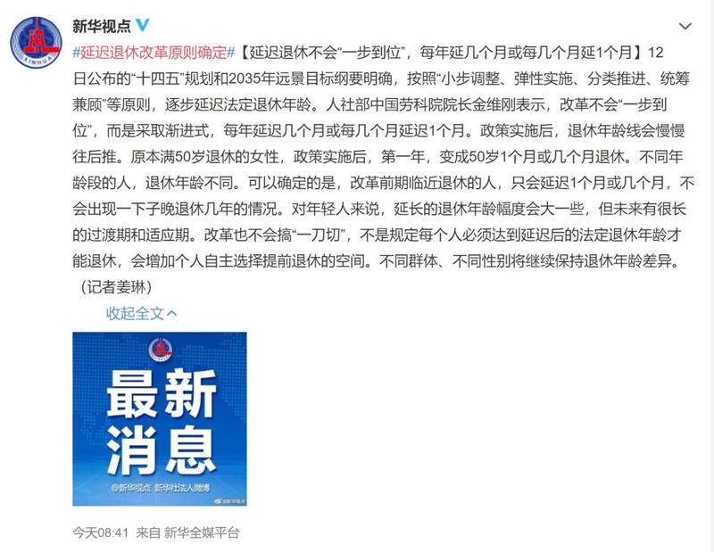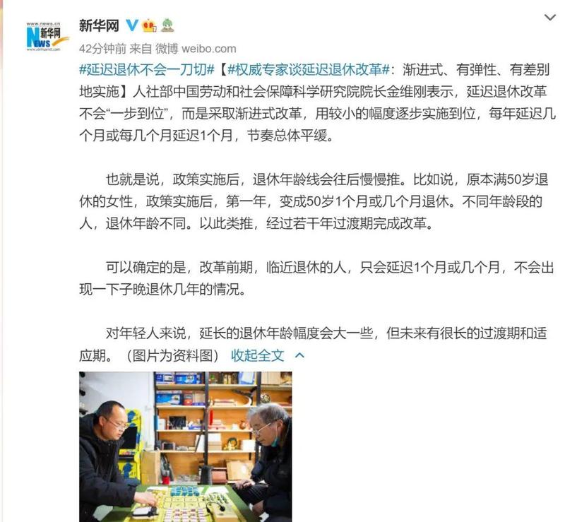 金维刚:延迟退休不是“齐步走”,而是要与现行退休政策平稳衔接。