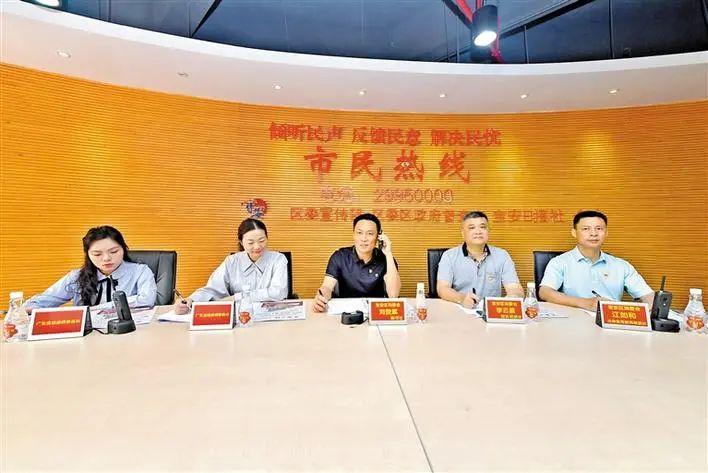宝安区消委会秘书长刘俊斌率队接听市民热线。