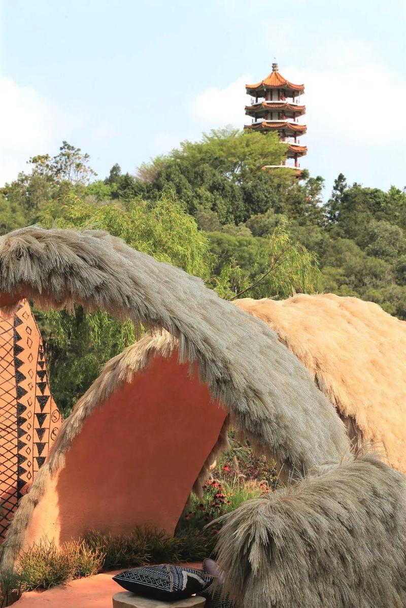 乌班图:图腾的黑色、墙面的土黄色和茅草的枯黄色映衬在一起,带着野性之美。
