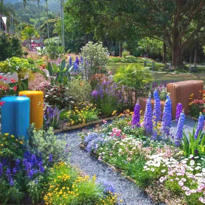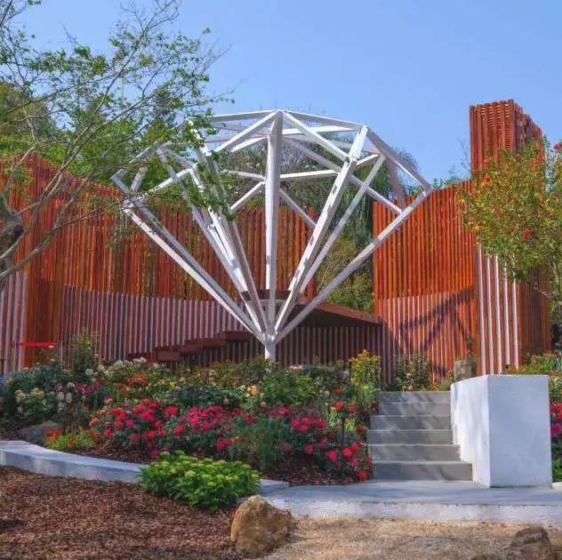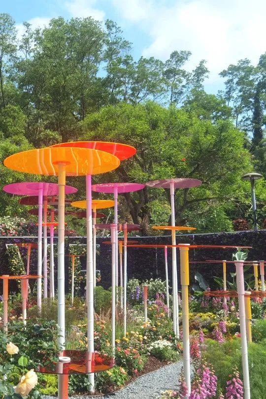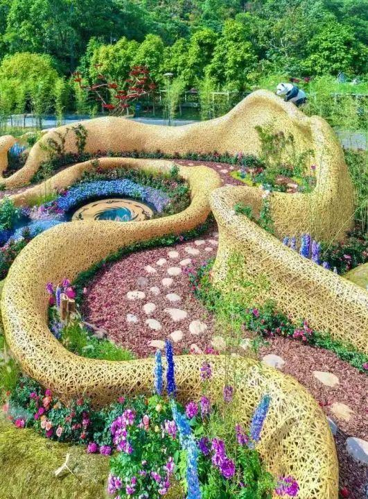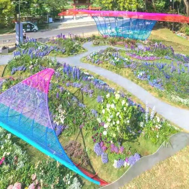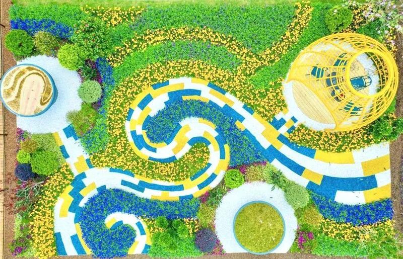 梵高的梦中花园是以梵高的画作《星月夜》和《麦田》为设计元素打造的现代花园景观。