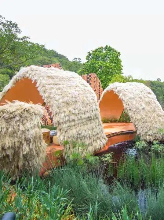 图腾的黑色、墙面的土黄色和茅草的枯黄色映衬在一起,带着野性之美,这一刻,让人恍然觉得自己并非身处鹏城,而是“穿越”到哪个神秘的部落。